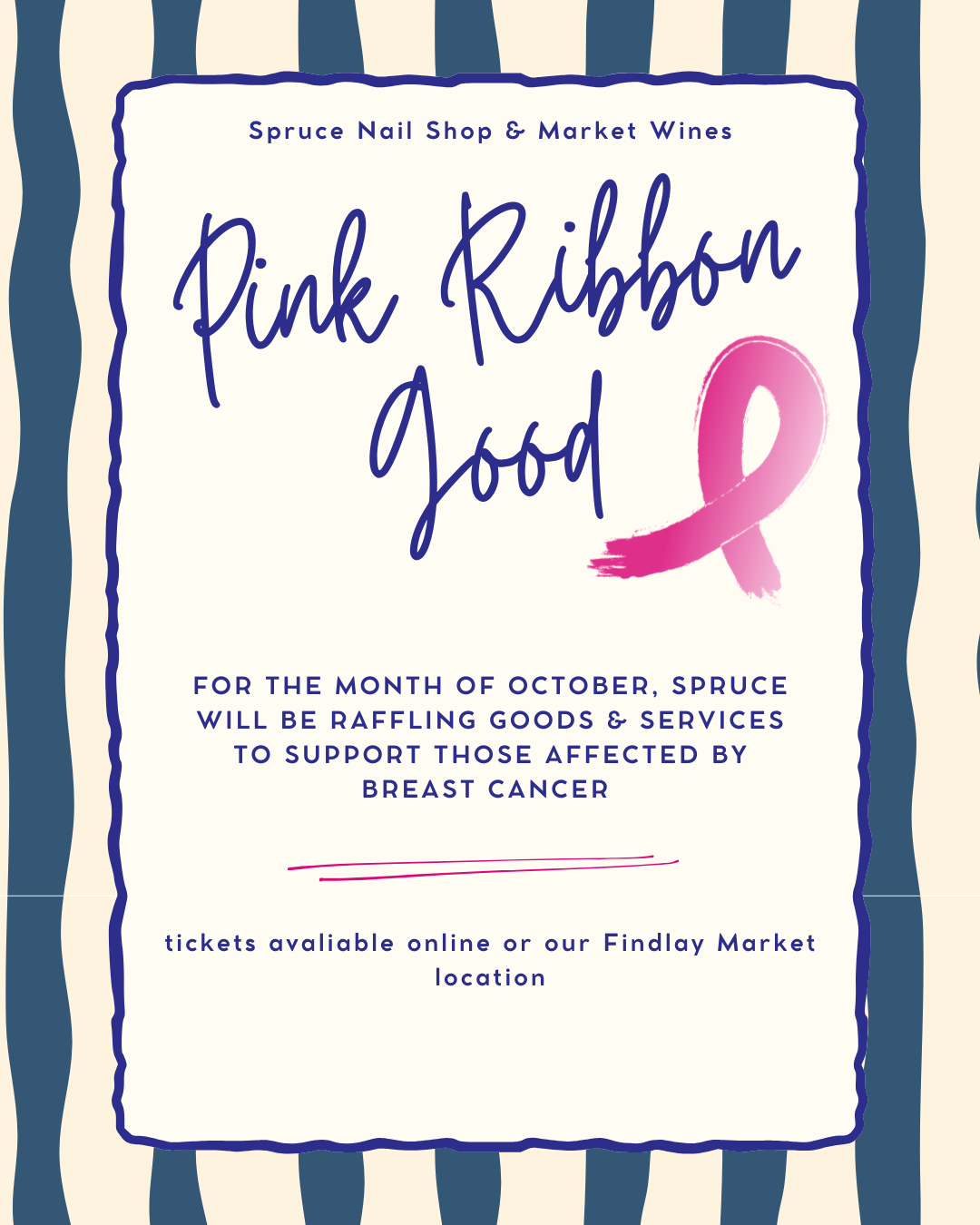 Our friends at Market Wines invited us to join them in raising money for Pink Ribbon Good, a non-profit organization that supports people going through breast cancer treatment by helping with cleaning, driving to appointments, walking dogs, cooking meals, etc. Many of our staff, family, and clients have been affected by breast cancer diagnoses, so we are so excited to join them in this effort!